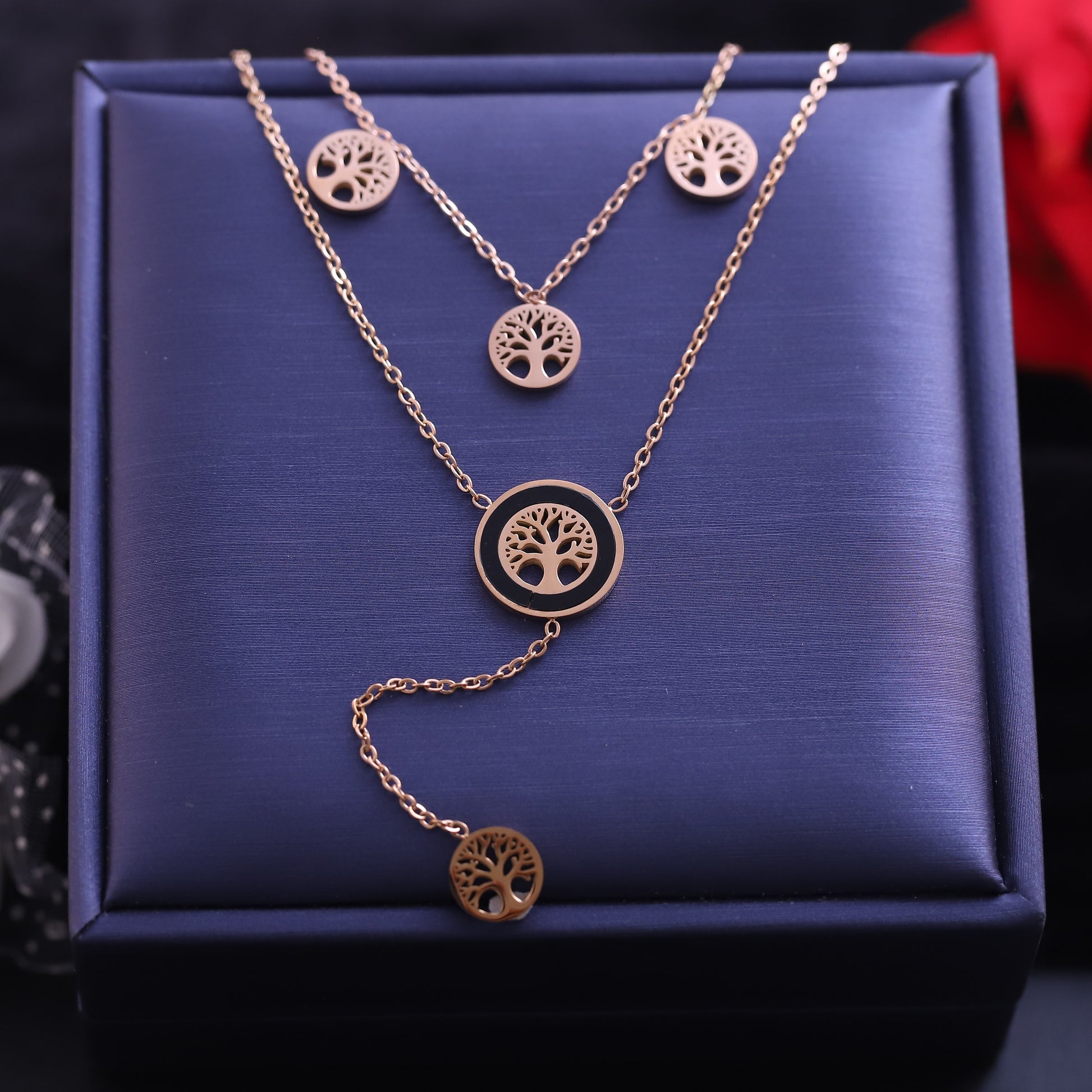 Embrace strength and positivity with our Tree of Life Necklace, crafted with layered gold-plated chains and detailed cut-out tree pendants. Finished with a premium anti-tarnish coating, this lightweight necklace is perfect for daily wear, layering, or gifting. A meaningful symbol of growth, balance, and harmony.