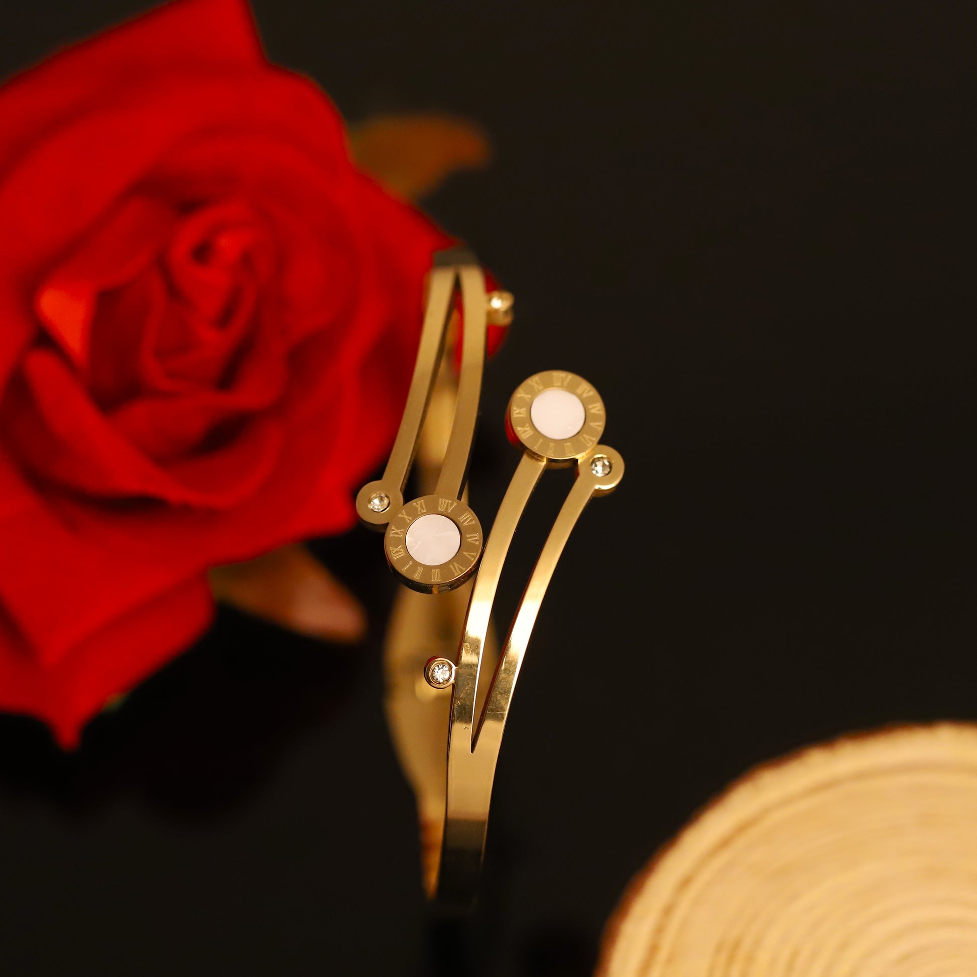The Ocean Glow Roman Bracelet beautifully blends modern wave-inspired design with classic Roman charm. Crafted in a rich golden finish and accented with sparkling crystal details, this bracelet captures the rhythm of the ocean with a luxurious glow.