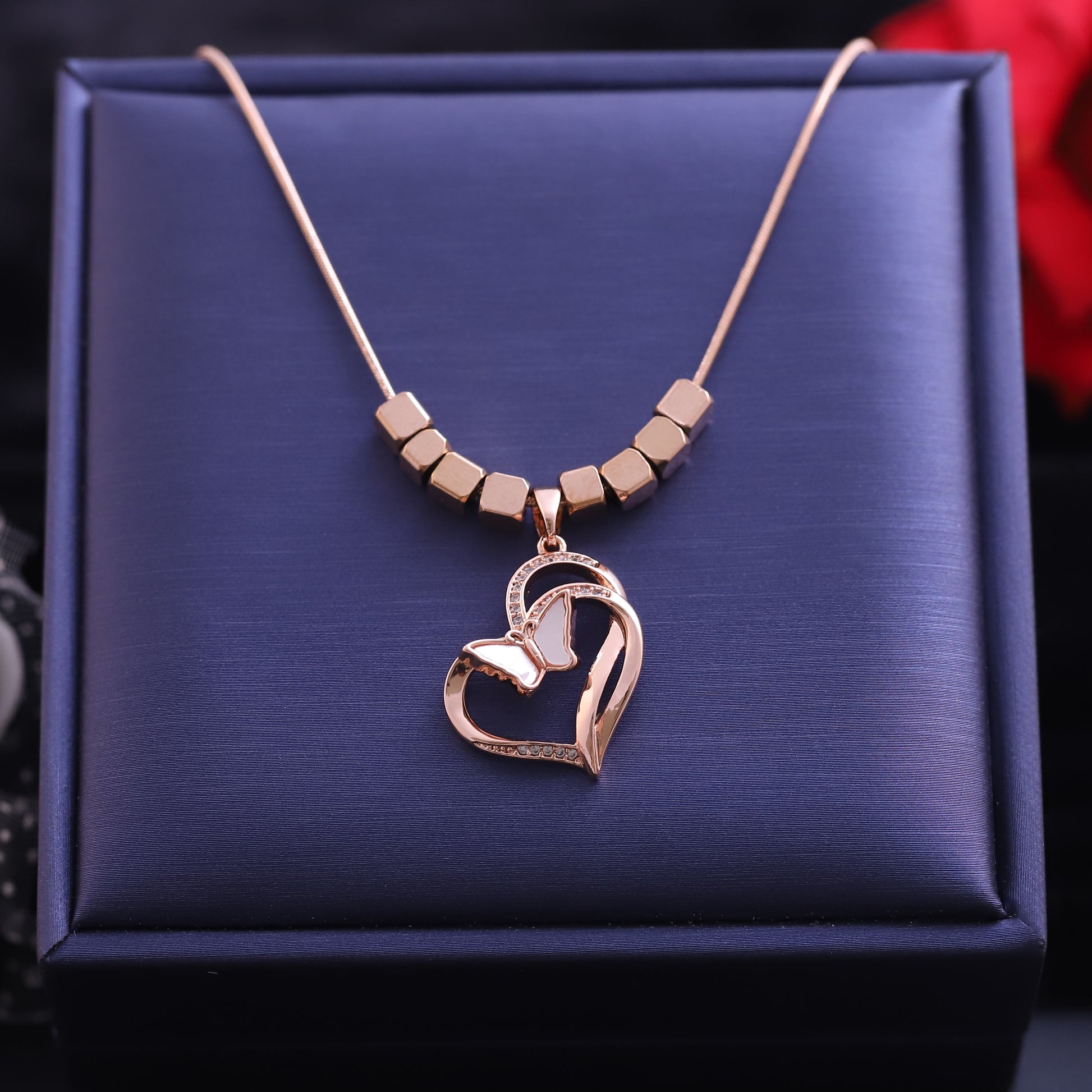 Celebrate love and elegance with this stunning Butterfly Heart Harmony Pendant. Crafted in a graceful heart shape adorned with a delicate butterfly, it symbolizes freedom, love, and new beginnings. Designed with a sleek golden finish and sparkling accents, this 18-inch pendant necklace is perfect for both everyday wear and special occasions. A timeless gift for someone special—or a treat for yourself.